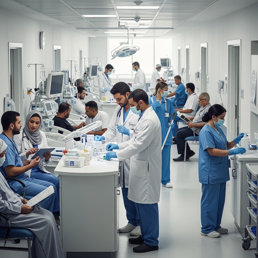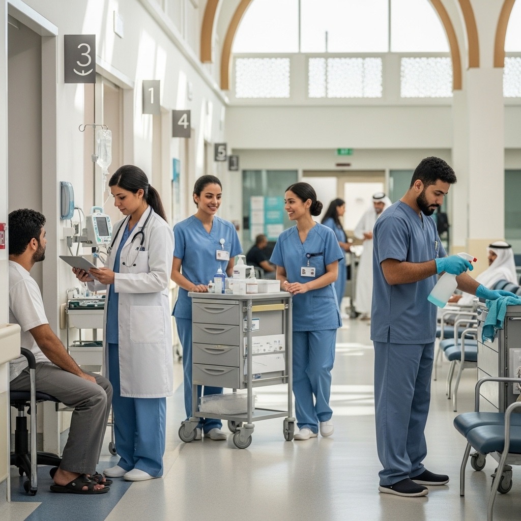 نقوم بتشغيل المستشفيات والمرافق الطبية من خلال توفير كادر صحي مؤهل والعناية بالنظافة والتعقيم وجميع احتياجات المرفق.